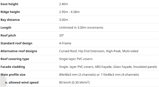 The P10 series tent has a width of 6m and can be extended indefinitely by increments of 3m.